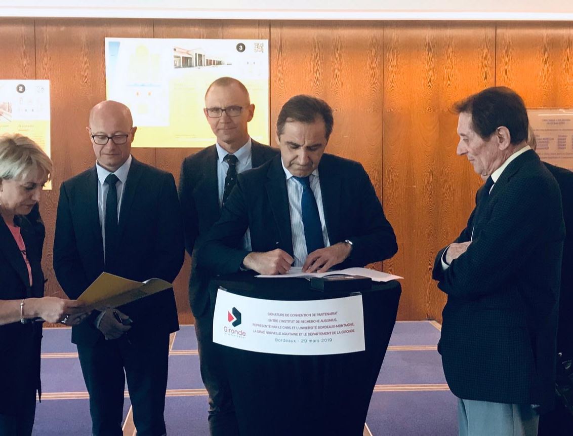 Le CNRS, le Département de la Gironde, l'Université Bordeaux Montaigne, et la DRAC Nouvelle-Aquitaine ont signé le 29 mars 2019 une convention de partenariat scientifique dans le cadre de la valorisation du site archéologique de la Villa gallo romaine de Plassac. Le projet scientifique et culturel est mené en collaboration étroite avec l’Institut Ausonius.